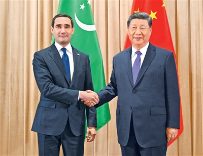 本報阿斯塔納6月17日電 (記者李強、李洋)當(dāng)?shù)貢r間6月17日上午,國家主席習(xí)近平在阿斯塔納出席第二屆中國—中亞峰會期間會見土庫曼斯坦總統(tǒng)別爾德穆哈梅多夫。