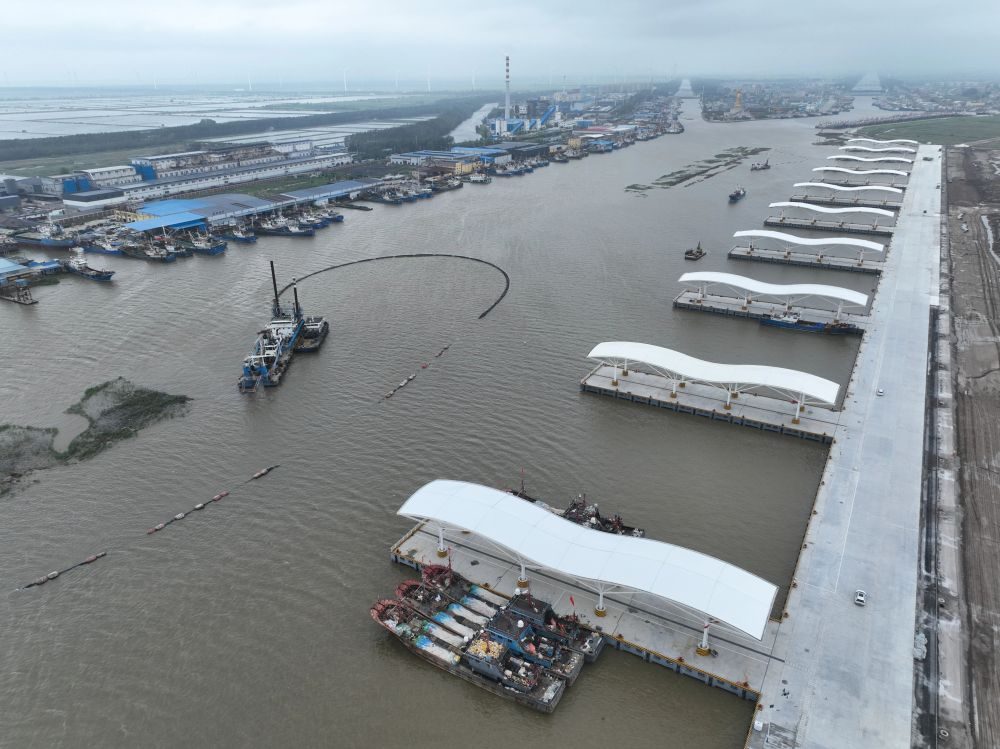 江蘇鹽城黃沙港國家中心漁港二期工程于2024年9月建成試運營,包含2022.42米順岸碼頭、16座突堤碼頭及配套設施,是國內首座全自動化漁業(yè)碼頭,配備智能卸貨系統(tǒng)、水產品交易區(qū)、冷凍倉儲等設施。
