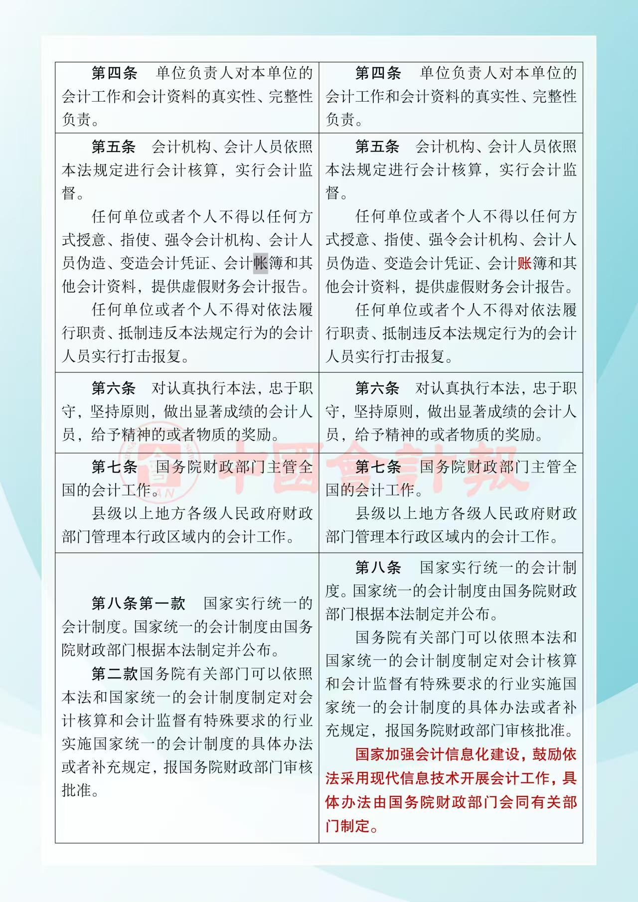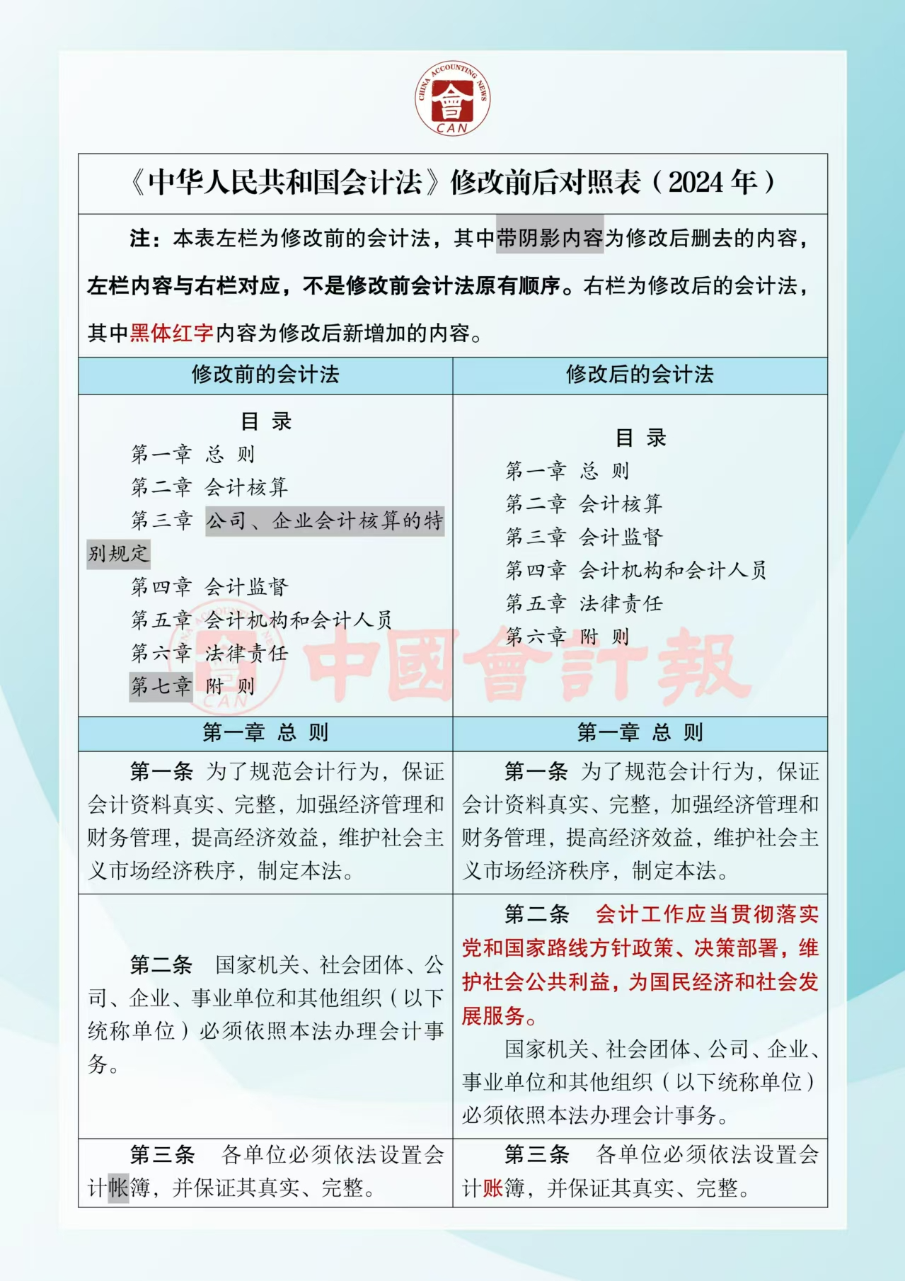 《中華人民共和國會計(jì)法》修改前后對照表(2024年)