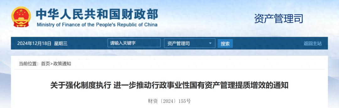 12月18日,財(cái)政部發(fā)布《關(guān)于強(qiáng)化制度執(zhí)行進(jìn)一步推動(dòng)行政事業(yè)性國有資產(chǎn)管理提質(zhì)增效的通知》。